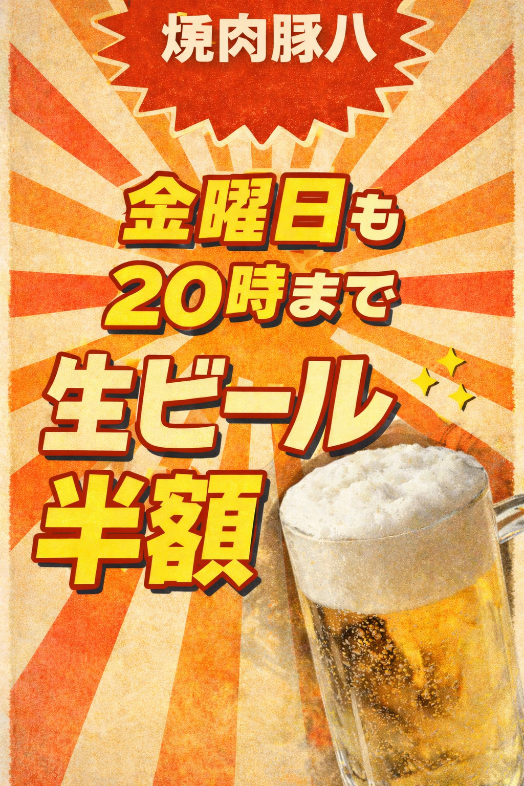 金曜日も20時まで生ビール半額